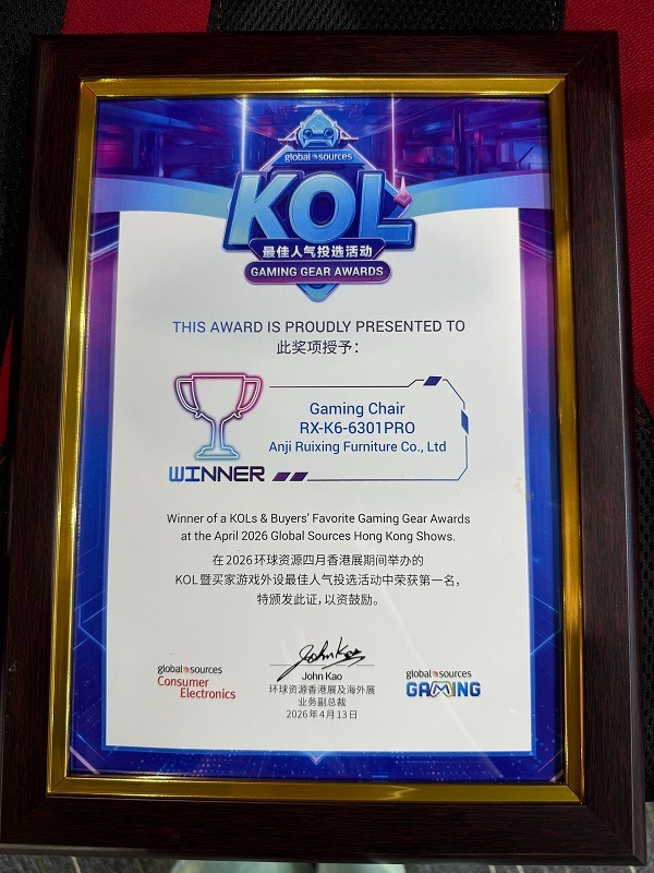 Meillä on suuri kunnia ilmoittaa, että pelituolimme (RX-K6-6301PRO) on voittanut '2026 KOLs & Buyers' Favourite Gaming Gear Award -palkinnon tämän vuoden näyttelyssä. Olemme jälleen kerran saaneet KOLs Best Popular Award -palkinnon, tunnustuksen, joka korostaa horjumatonta sitoutumistamme huippuosaamiseen pelituolialan laadussa ja huippuluokan suunnittelussa. Erinomaisella ergonomisella muotoilullaan, edistyneellä teknologiallaan ja tyylikkäällä ulkonäöllään varustettu RX-K6-6301PRO on kerännyt yksimielisiä kiitosta KOL:ilta (Key Opinion Leaders) ja ostajilta, mikä on ansainnut tämän arvostetun kunnian.